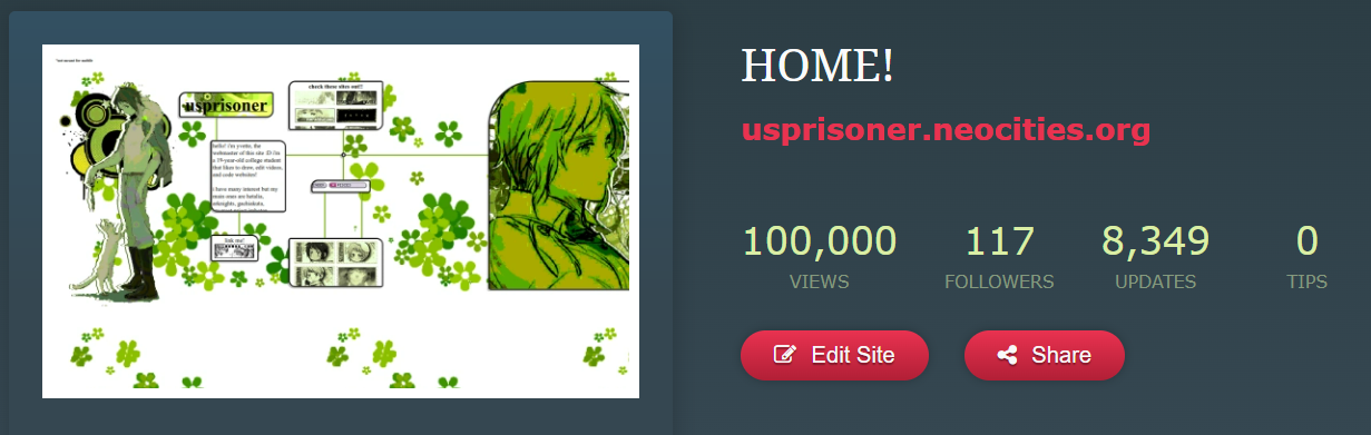 Neocities allows anyone to create a free web site to express themselves. Want to create your own awesome site? Join us!